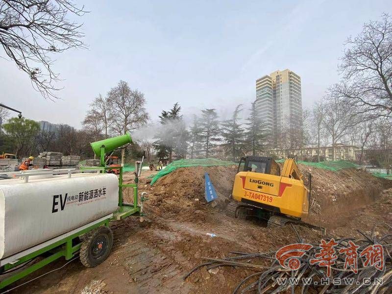 “花萼相辉楼”正在进行外立面修缮施工 园区管网施工完成超90%