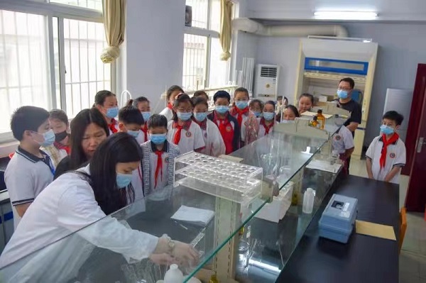 参加活动的师生先后观看了环境保护专题片和环境监测实验室化验分析的技术和方法。随后,师生分批实地参观了县监测站的水质化验分析室。县监测站的技术人员结合实验分析仪器、设备给师生做了深入浅出、生动的讲解。部分师生亲自动手做了简单的化验操作。